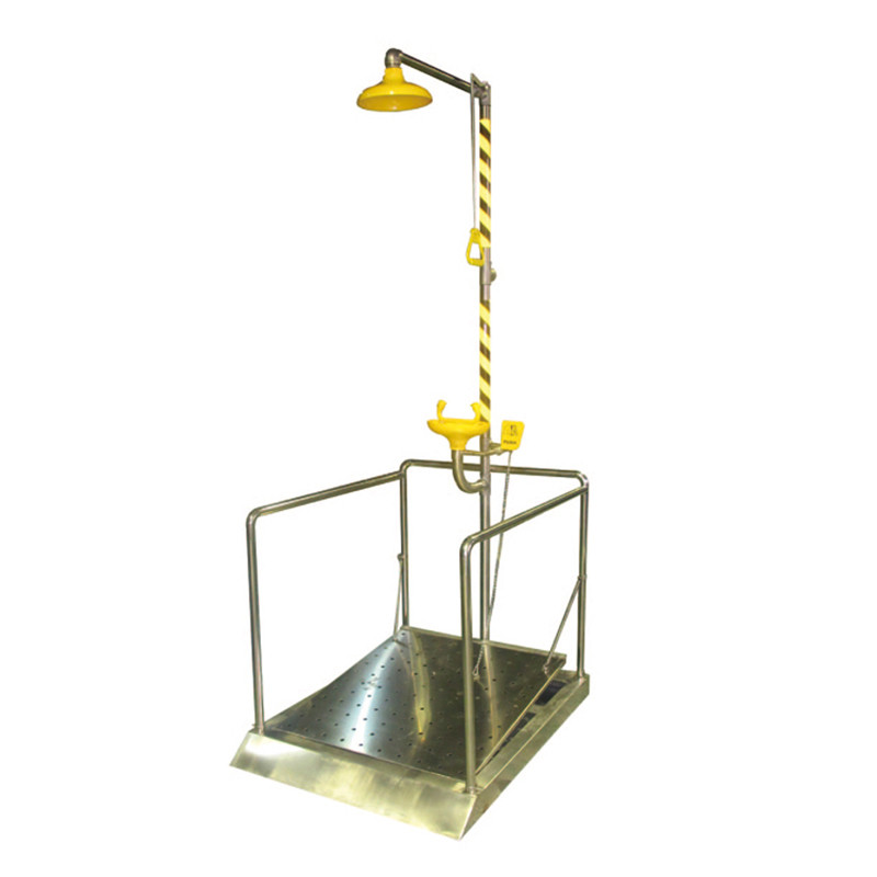 当化学品物质喷溅到工作人员服装或者身体上的时候,可以使用复合式洗眼器的喷淋系统进行冲洗,冲洗时间至少大于15分钟;